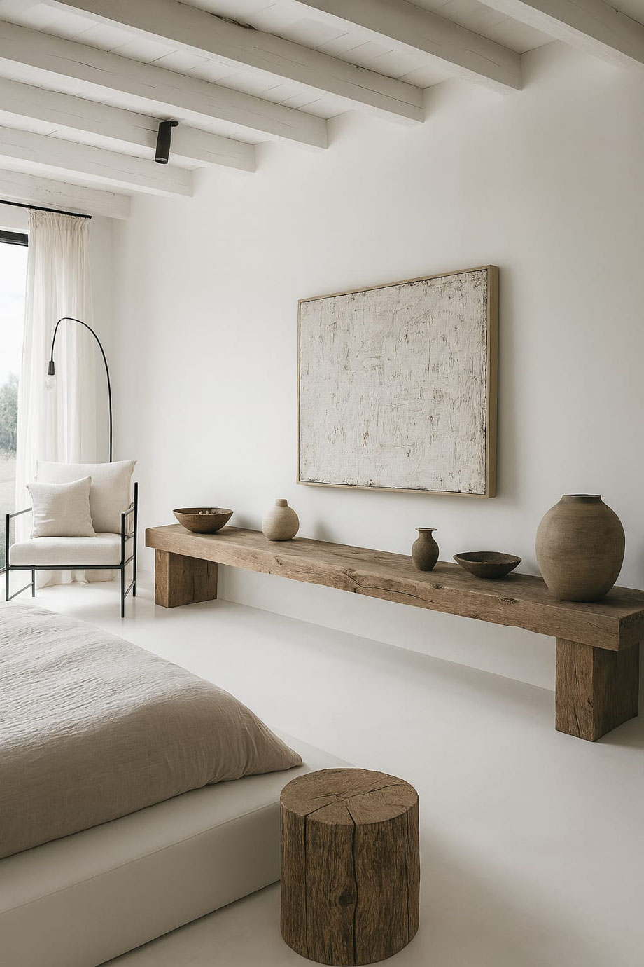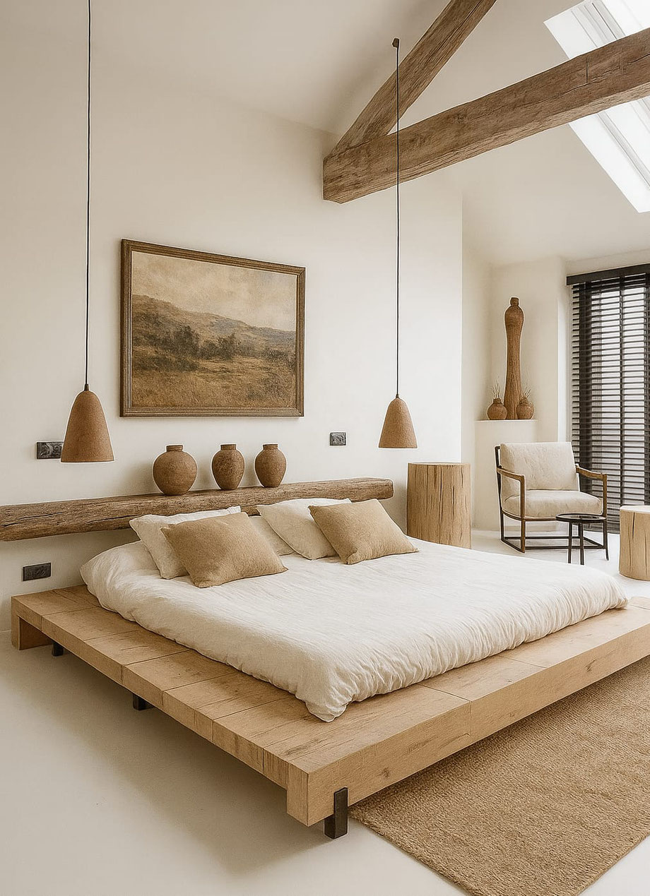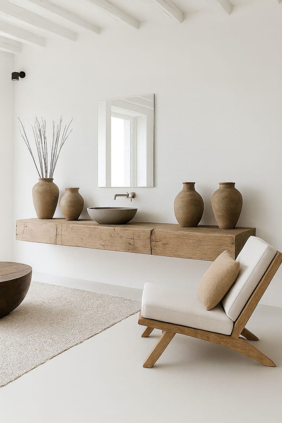 Japandi: equilibrio entre minimalismo japonés y calidez escandinava, sobrio y funcional.