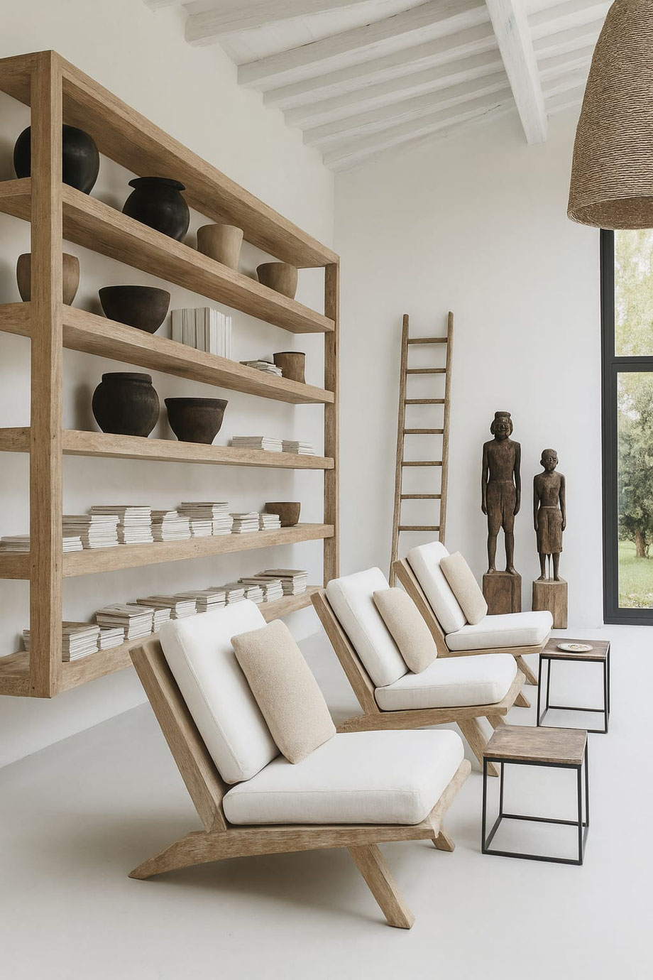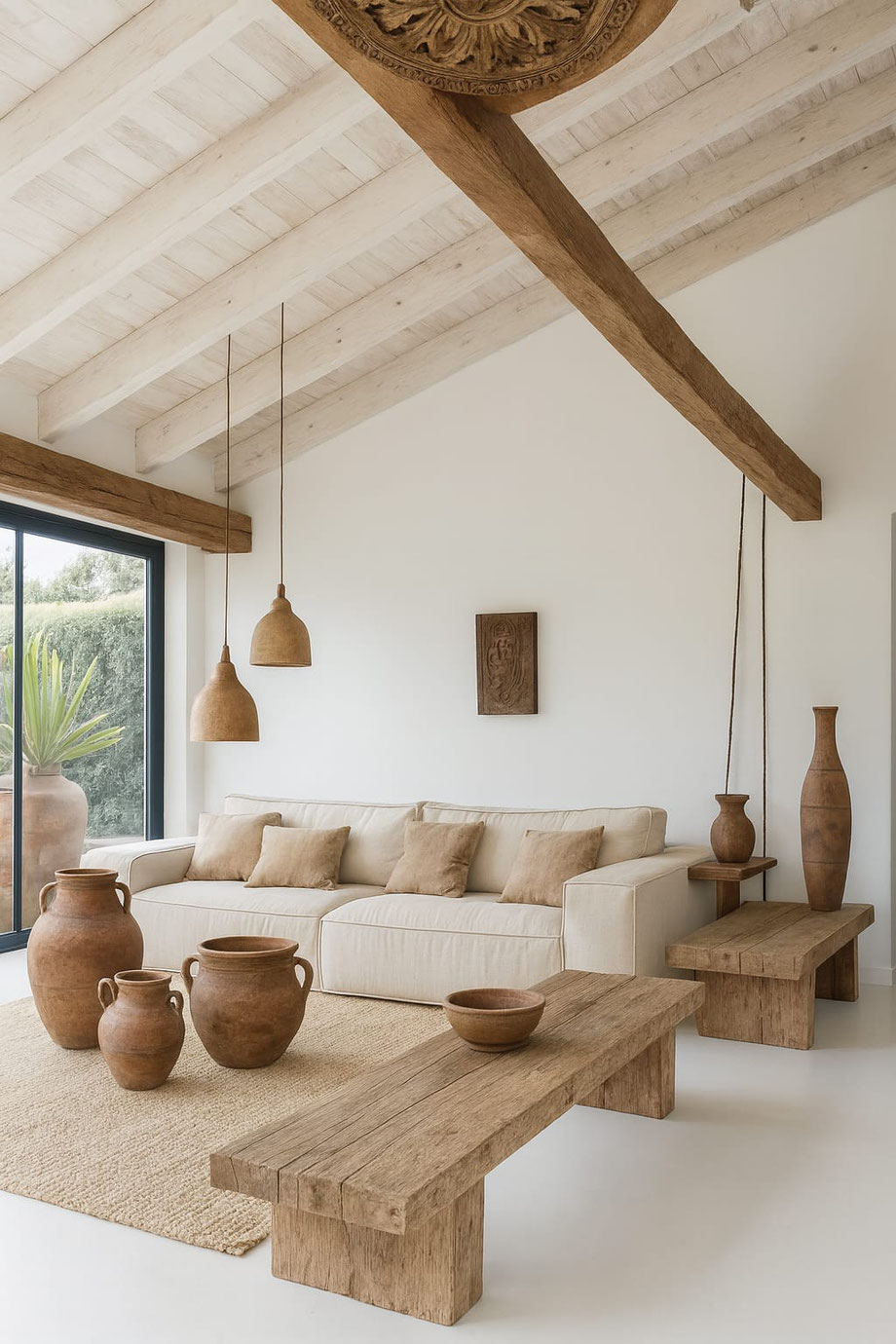 Mediterráneo: luminoso y sereno, con maderas claras, fibras naturales y la calidez de la costa.
